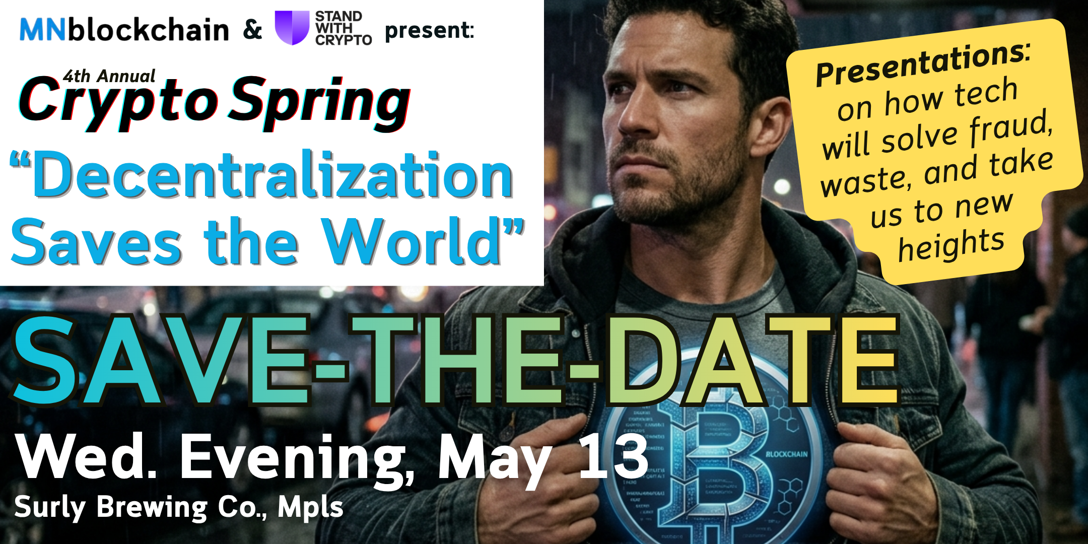 MARK YOUR CALENDARS May 13 for our 4th Annual Crypto Spring returning to Surly Brewing and co-hosted with Stand With Crypto.